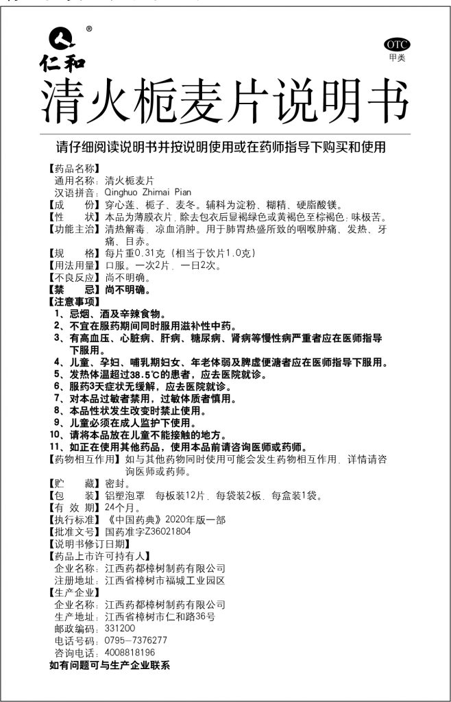 清熱解毒,涼血消腫。用于肺胃熱盛所致的咽喉腫痛、發(fā)熱、牙痛、目赤。