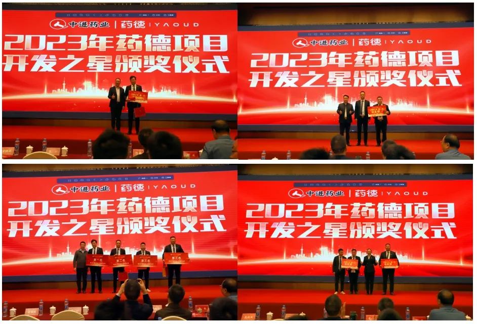 中進(jìn)市場部部長劉永權(quán)宣布《2023年藥德項(xiàng)目開發(fā)之星TOP前三名》,盛邀蘇州華瓴科技有限公司發(fā)展中心總裁盧恩勝、蘇州華瓴科技有限公司發(fā)展中心常務(wù)副總裁孟維君、中進(jìn)人力資源部部長胡耀萍分別為獲得”藥德項(xiàng)目開發(fā)之星”第一名、第二名、并列第三名獲獎(jiǎng)省區(qū)頒獎(jiǎng),現(xiàn)場藥德服務(wù)商也為獲獎(jiǎng)省區(qū)送上特殊禮品,獲獎(jiǎng)的優(yōu)秀省區(qū)代表分別作了熱情洋溢的開發(fā)經(jīng)驗(yàn)分享。