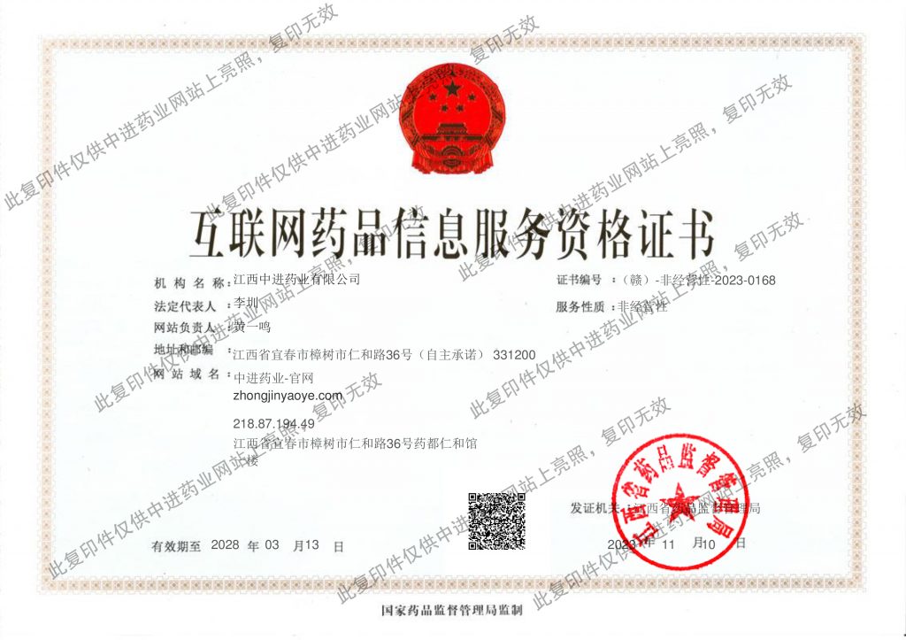 互聯(lián)網(wǎng)藥品信息服務(wù)資格證書:(贛)-非經(jīng)營性-2018-0006