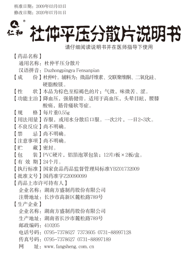 杜仲平壓分散片