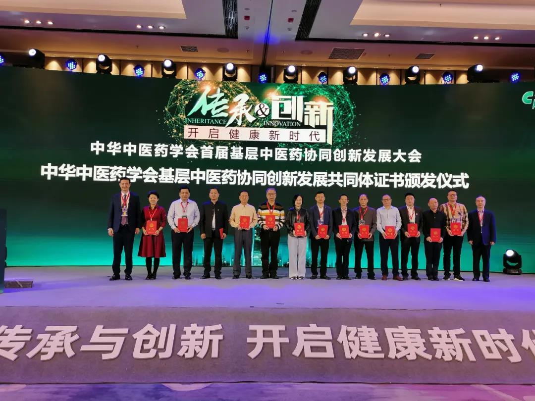 當(dāng)天上午會議現(xiàn)場,”中創(chuàng)體“核心發(fā)起單位之一的江西中進(jìn)藥業(yè)有限公司參加了中華中醫(yī)藥學(xué)會基層中醫(yī)藥協(xié)同創(chuàng)新發(fā)展共同體成立儀式,”中創(chuàng)體“常委會副主席、中進(jìn)藥業(yè)總經(jīng)理陳紅鋼上臺領(lǐng)取了證書。