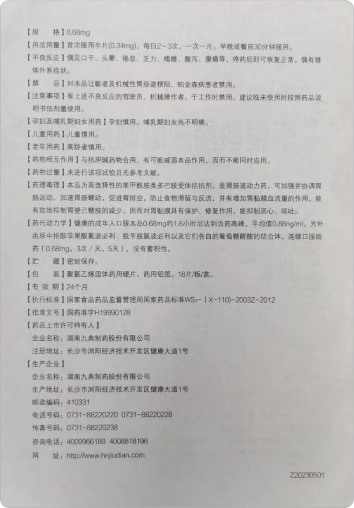 用于因胃排空延緩、胃食管反流、胃炎、食道炎引起的上腹飽脹、疼痛、惡心、嘔吐、噯氣、反酸、食欲不振、消化不良及便秘、糖尿病性胃輕癱和惡心嘔吐時的對癥治療。